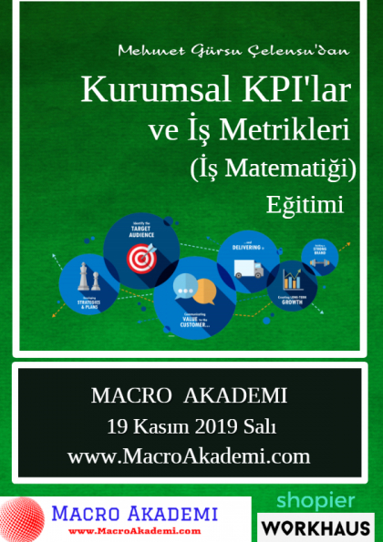 Genel Kurumsal KPI’lar ve İş Metrikleri; Sektörlerden bağımsız olarak her sektör için genel kabul görmüş kriterlerdir. Her sektörün kendine özgü ek kilit performans göstergeleri olsa da, eğitimde sunulacak genel kriterler tüm minör göstergelerin de çıkış noktasıdır. Eğitim Macro Retail Akademi Tarafından Verilmektedir. ( www.MacroRetail.com )