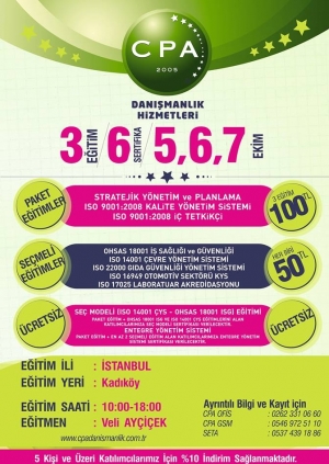 Birçok uygulama ile desteklenen bu eğitimde ISO 9001:2008 Kalite Yönetim Sisteminin gereklilikleri katılımcılara aktarılacaktır. Katılımcılara gelecekte işte başarı kazanmalarını sağlamada kalite standartlarının önemini değerlendirmelerinde yardımcı olacaktır. Bu eğitim, kalite standartlarının ve belgelendirme konularının ele alındığı ideal bir giriş sağlamaktadır.